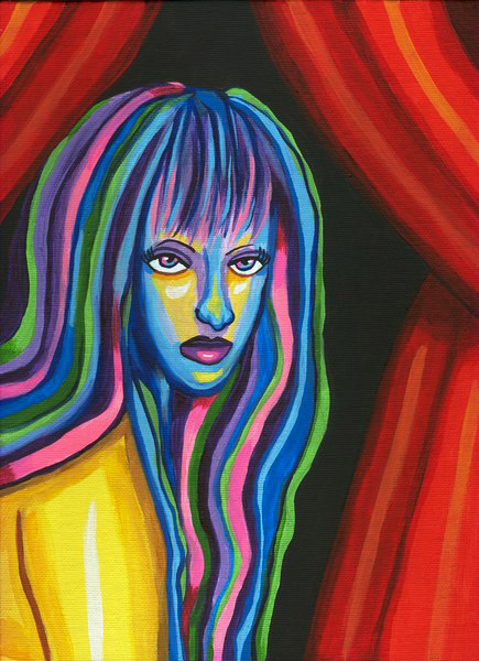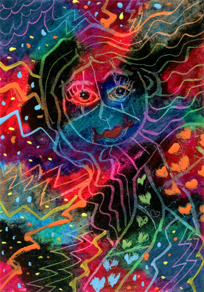neon nightmare abstract womans face drawing