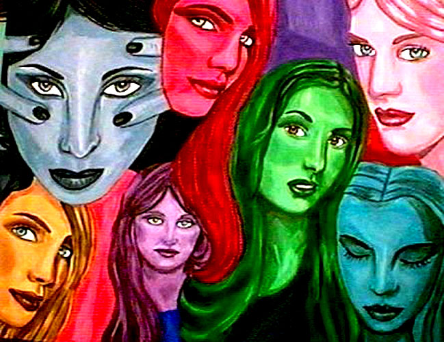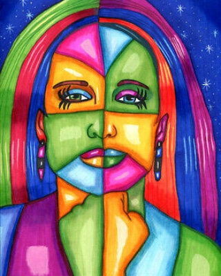 abstract womans faces from the past pastel art drawing
