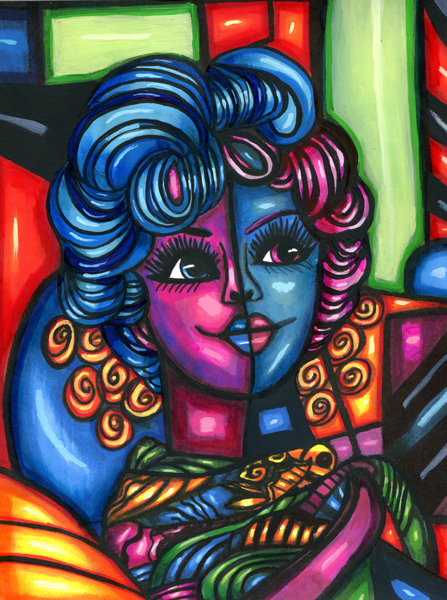 Abstract Italian womans face markers art drawing