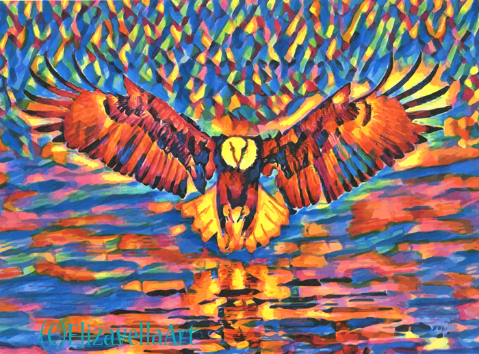 eagle flying over lake abstract markers art drawing