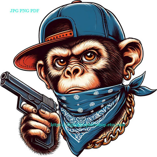 gangster monkey png, jpg, cartoon animal illustration clipart, printable art, digital print download Price $2.99 click on link to purchase https://digitalgraphicsshop.etsy.com/listing/1721022306