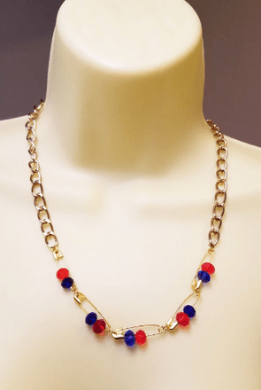price: $7.99 . To purchase click my store link https://www.montanaoriginalart.com/listing/1811029297/blue-and-red-glass-bead-safety-pin