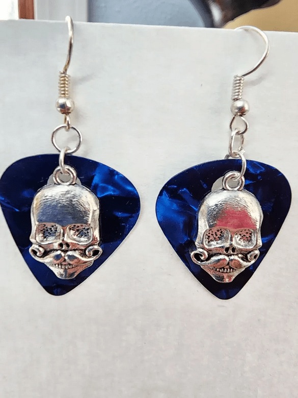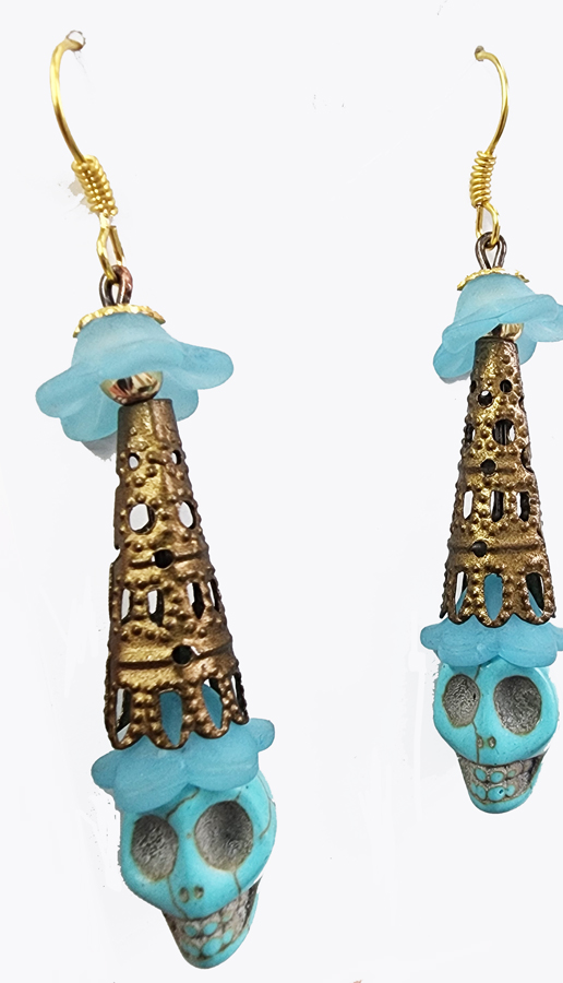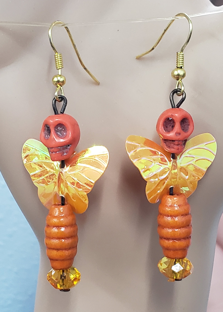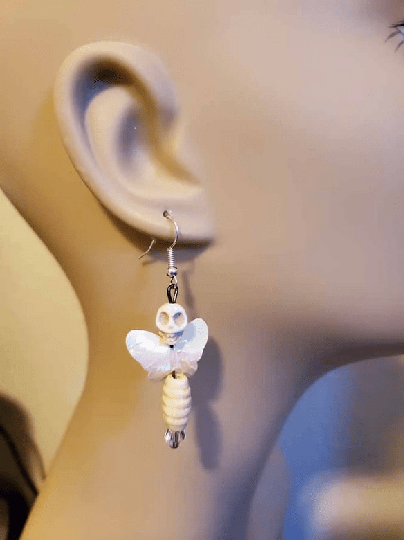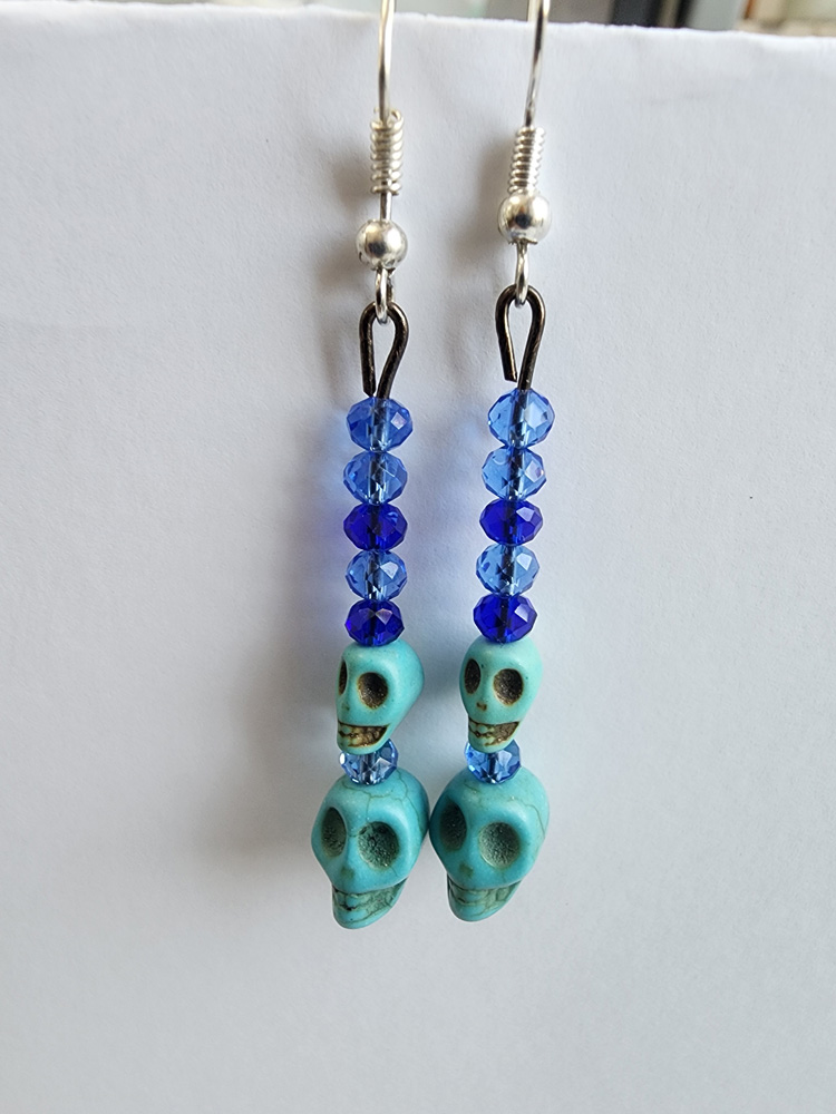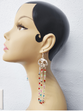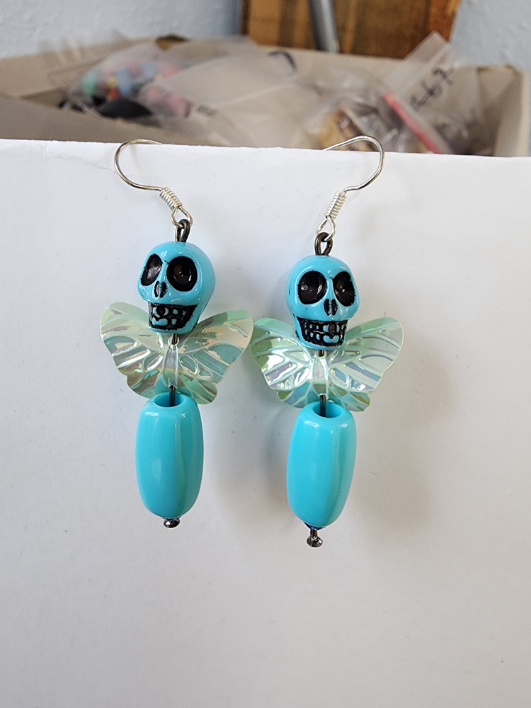 To purchase click my store link https://www.montanaoriginalart.com/listing/1797275402/glass-bead-skull-charm-earrings-long