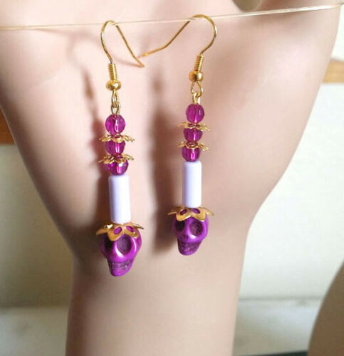 To purchase click my store link https://www.montanaoriginalart.com/listing/1398334765/purple-turquoise-skull-earrings-sugar