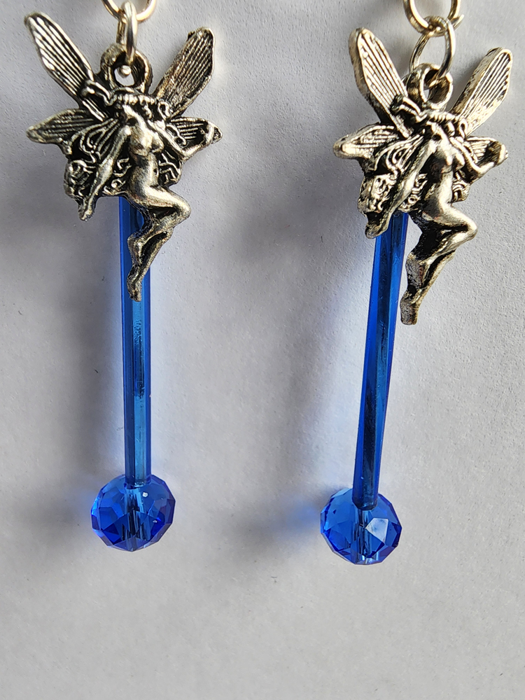 To purchase click my store link https://www.montanaoriginalart.com/listing/1659164677/fairy-blue-glass-bead-drop-earrings