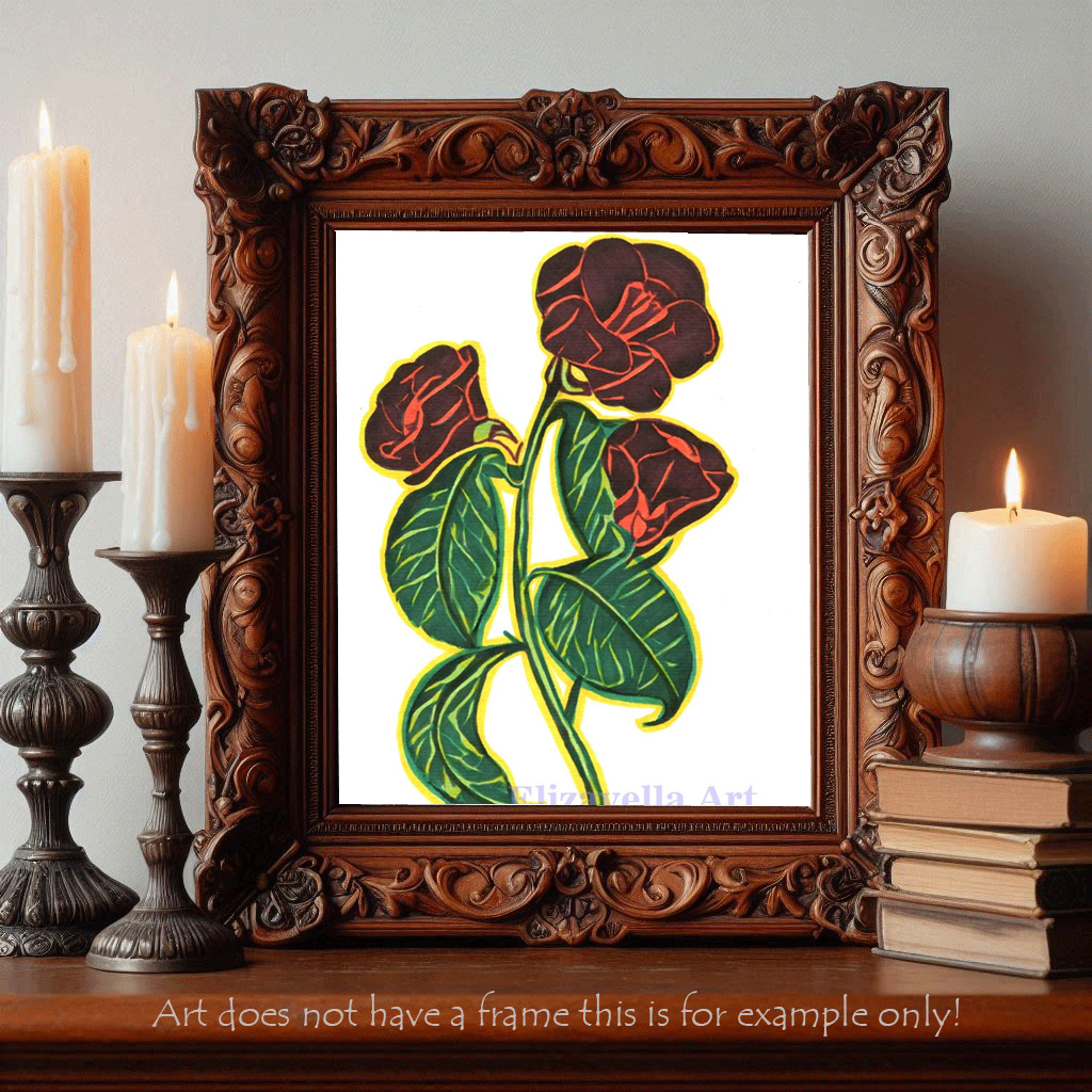 price: $19.99 . To purchase click my store link https://www.montanaoriginalart.com/listing/4350963356/original-drawing-red-roses-green-leaves
