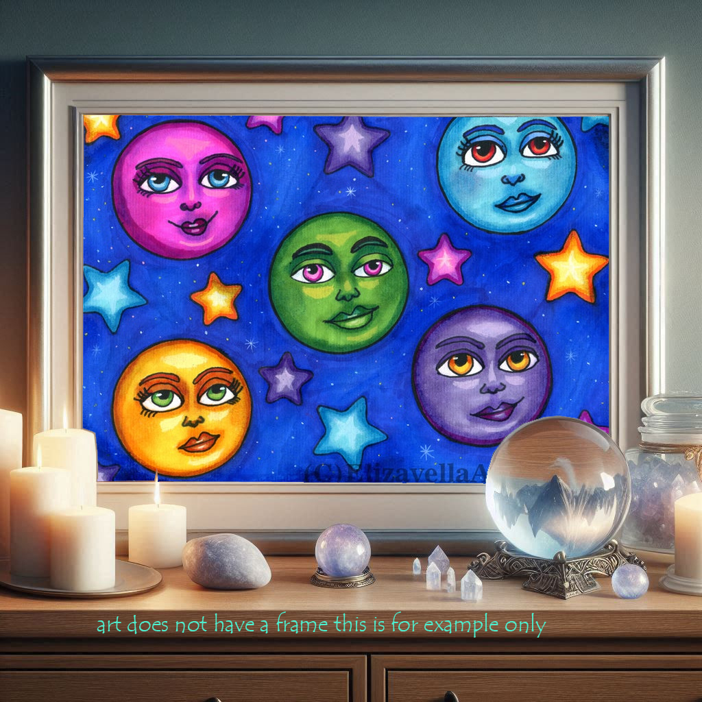 To purchase click my store link https://www.montanaoriginalart.com/listing/4318527036/moon-faces-original-art-drawings-markers
