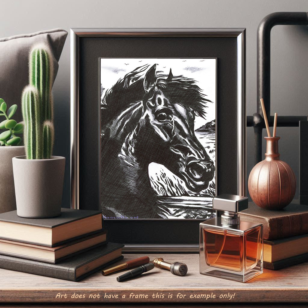 price: $39.99 To purchase click my store link https://www.montanaoriginalart.com/listing/4352587901/black-stallion-horse-ink-drawing