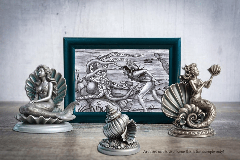 price: $29.99 . To purchase click on my store link https://www.montanaoriginalart.com/listing/4304922067/mermaid-girl-art-ink-drawing-whimsical